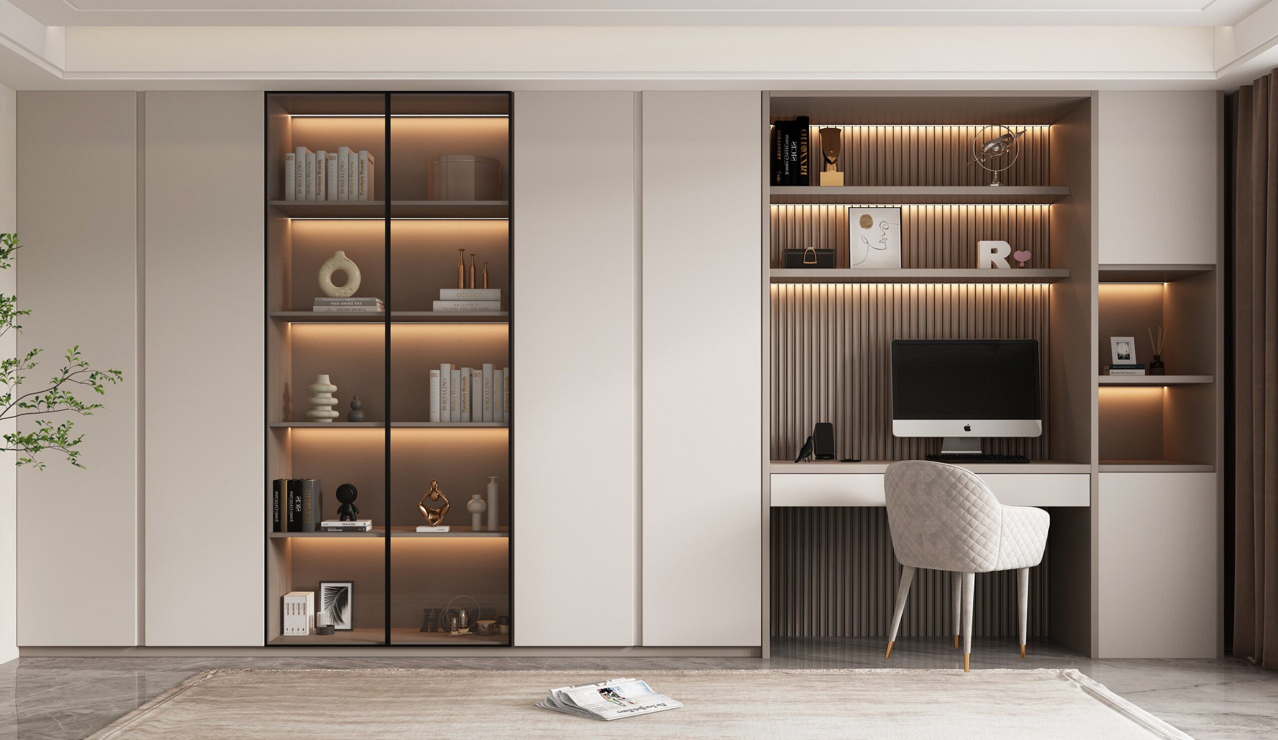 Floor-to-ceiling study room bookcases with adjustable shelves accommodate books of all sizes. Glass-door models prevent dust and pests, while integrated LED lighting aids nighttime reading. Eco-friendly E0-grade panels ensure a safe, quiet workspace for focused productivity.