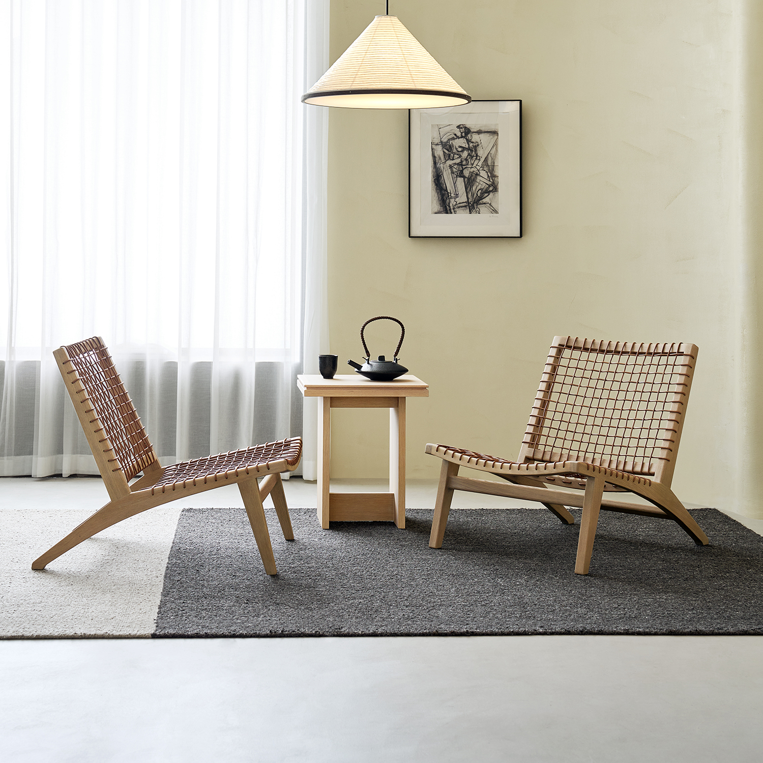 An ergonomic accent chair with curved backrest and solid wood frame offers all-day comfort. Paired with ottomans for reading nooks or lobbies, its neutral colors and clean lines complement any decor.